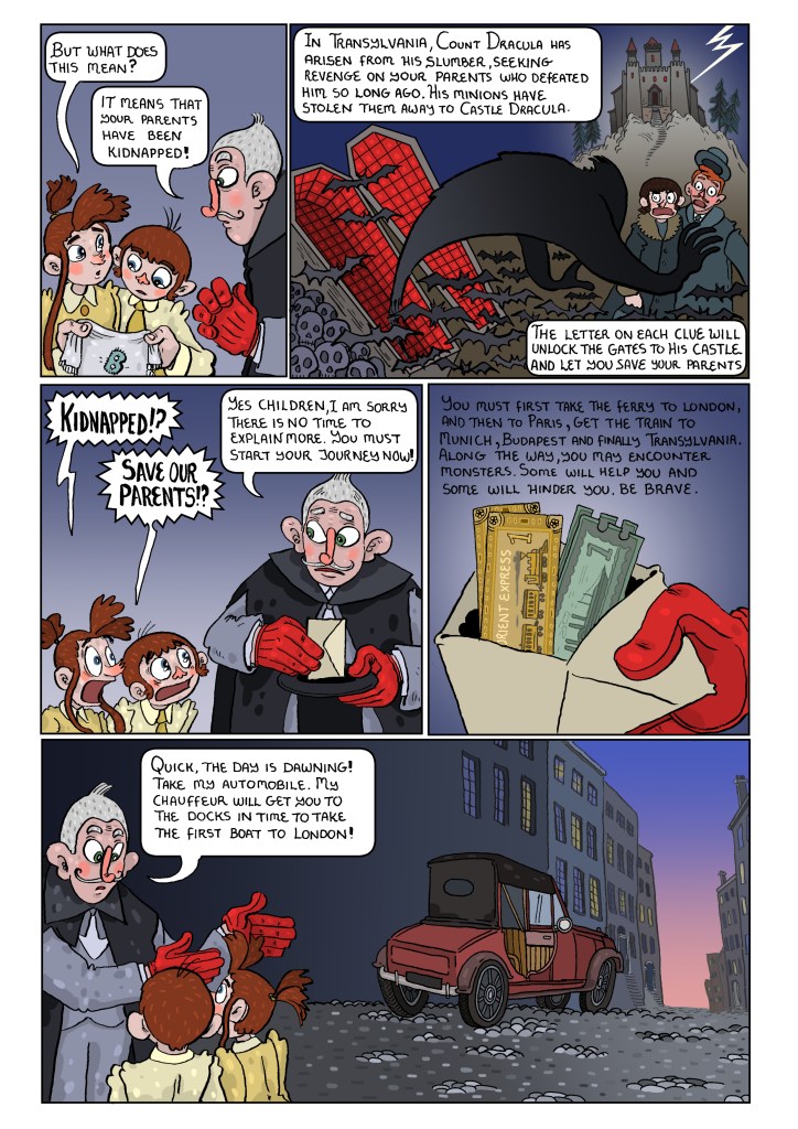The story doesn’t end here! Have a look for Chapter Two: London, to help Quincey and Lucy find their parents and rescue them from Count Dracula!